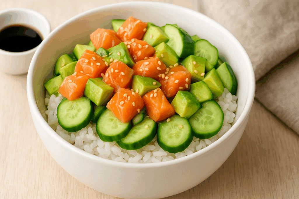チャッピー生成、「 サーモンとアボカドのポキ丼」のイメージ画像