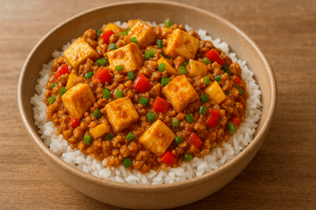 チャッピー生成、「 豆腐とひき肉のカラフルキーマ丼」のイメージ画像