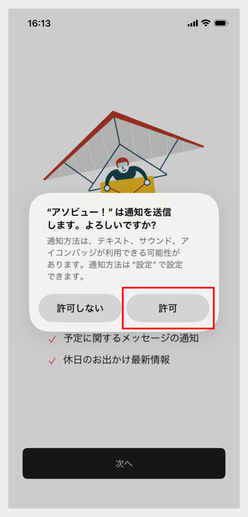 予定に関するメッセージは受け取りたいので、[許可]をタップ。